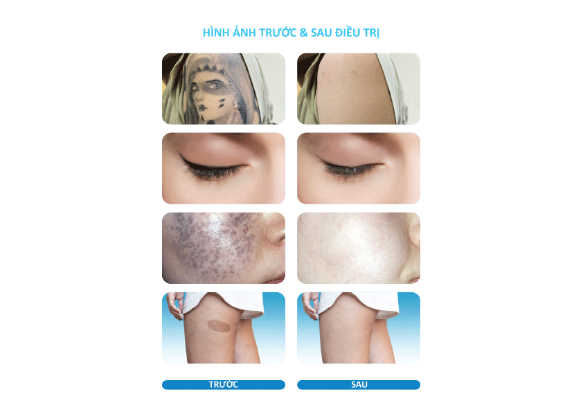 - Bước sóng 532nm: tác động vào lớp nông và tới nhiều sắc tố khác nhau như sắc tố đen (melanin), sắc tố đỏ (oxy hemoglobin)